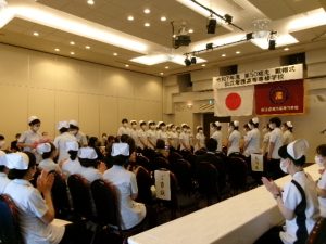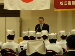 厳かな雰囲気の中、戴帽生全員で誓いの言葉を述べました。
