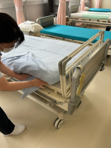 1年生が初めての基礎看護技術実技テスト(ベッドメーキング)を行いました。