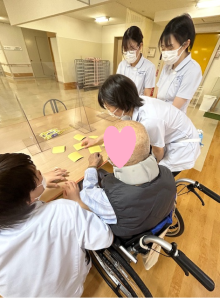 受け持ち患者さんと手作りのカードゲームでリハビリを兼ねたレクリエーションを行いました。